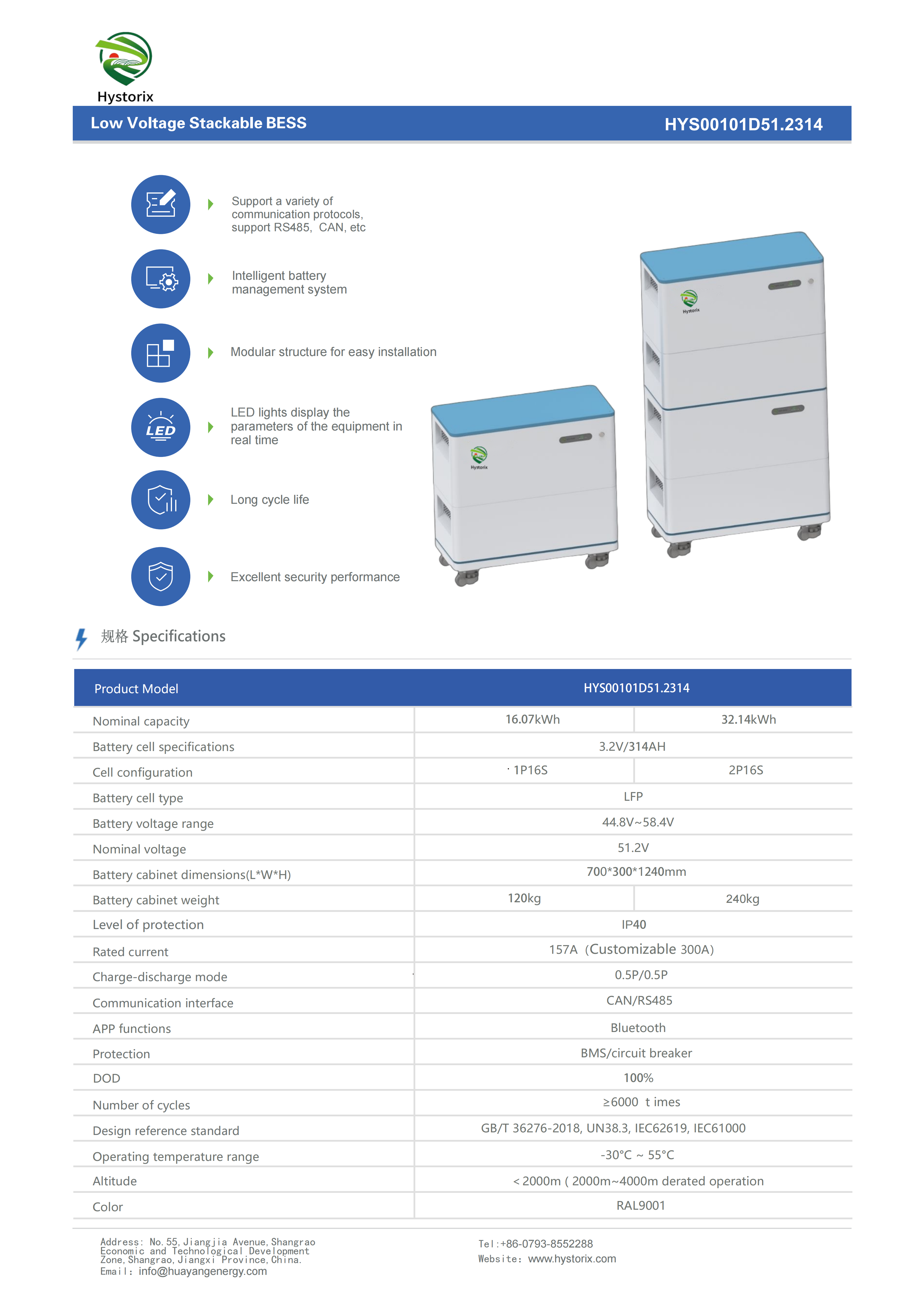 Low voltage stacked 28.66kWh energy storage battery